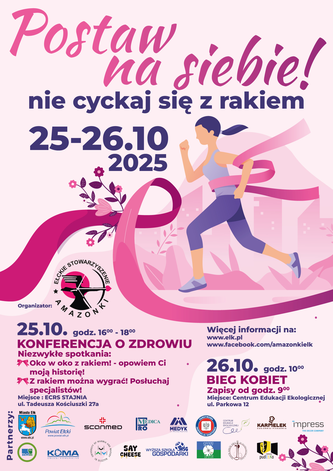 Październik jest Miesiącem Świadomości Raka Piersi. W „piękny” weekend, w dniach 25-26 października w Ełku odbędzie się Konferencja o Zdrowiu oraz Bieg Kobiet. Wszystko po to, by przypomnieć jak ważne są regularne badania i troska o zdrowie.